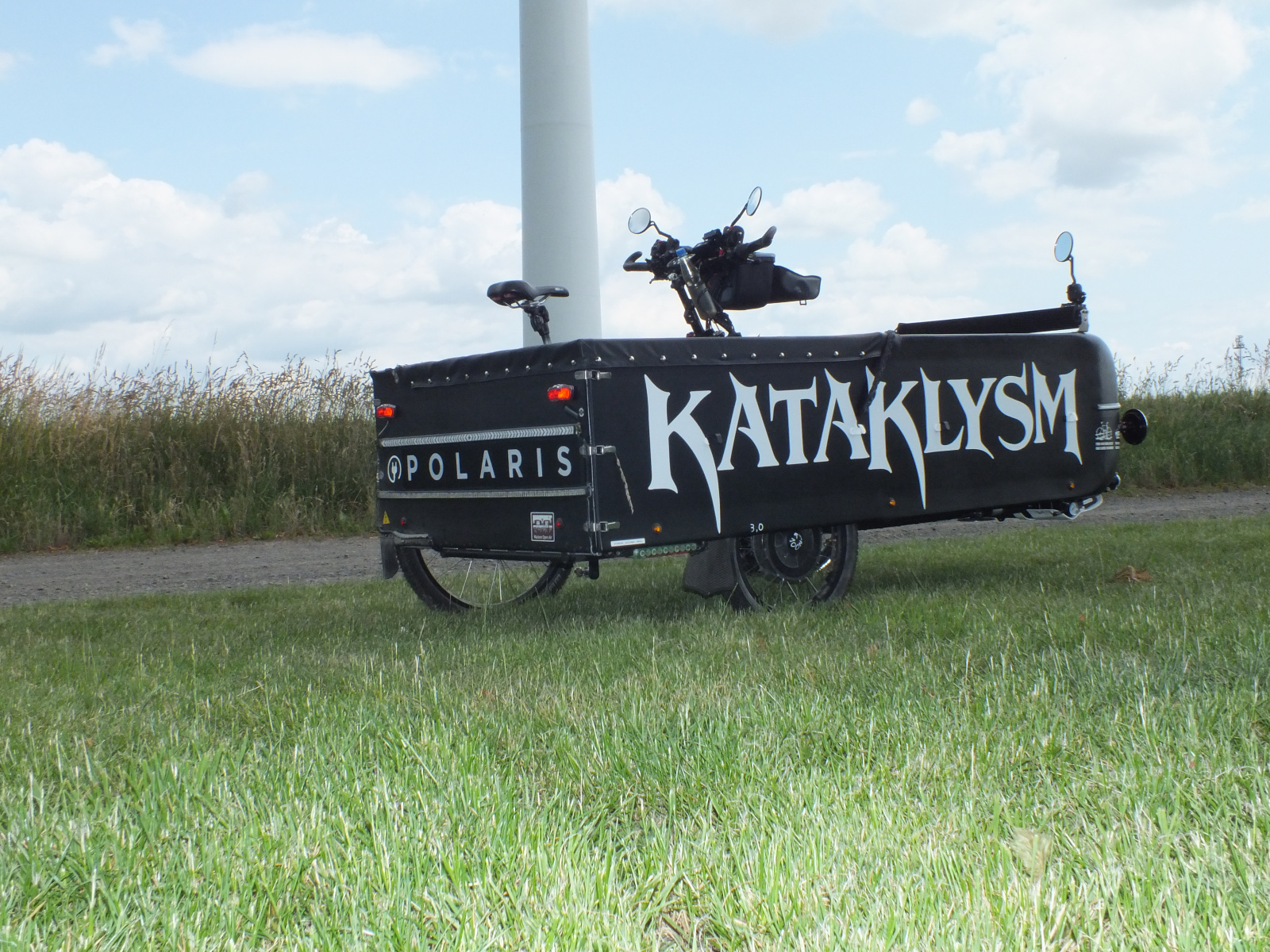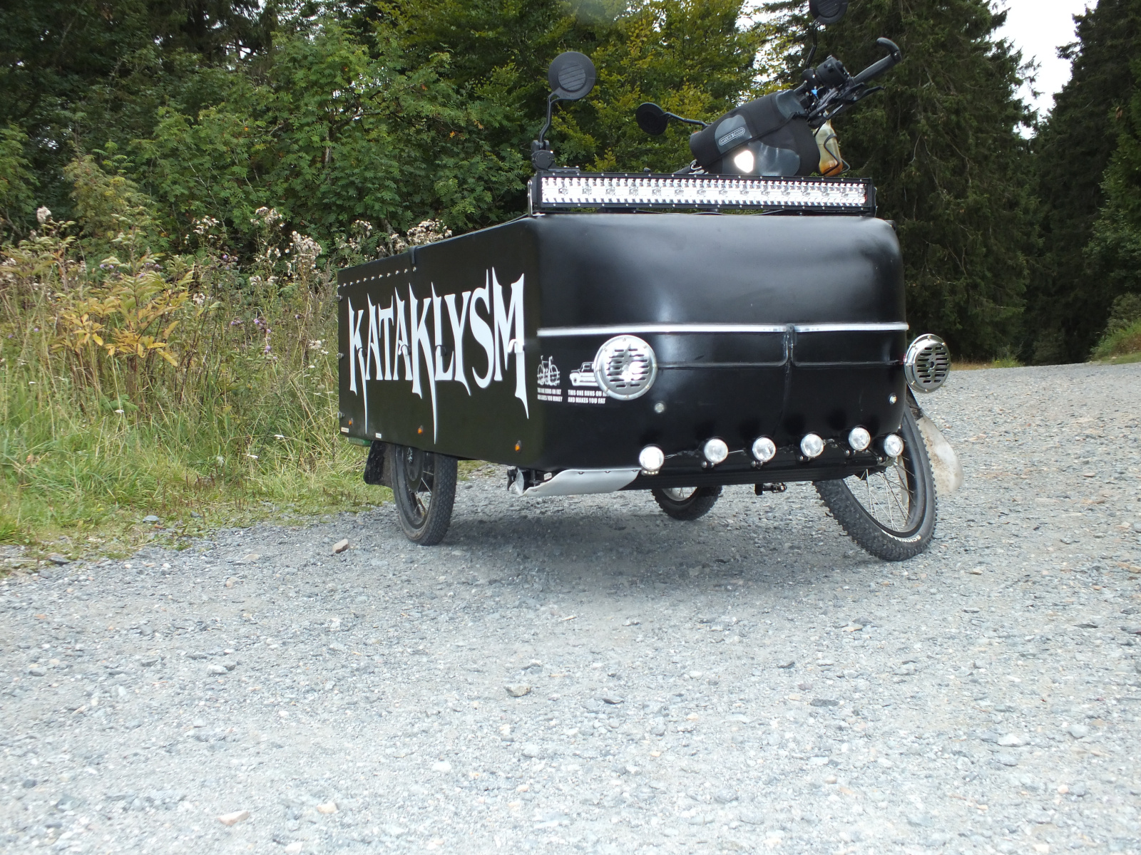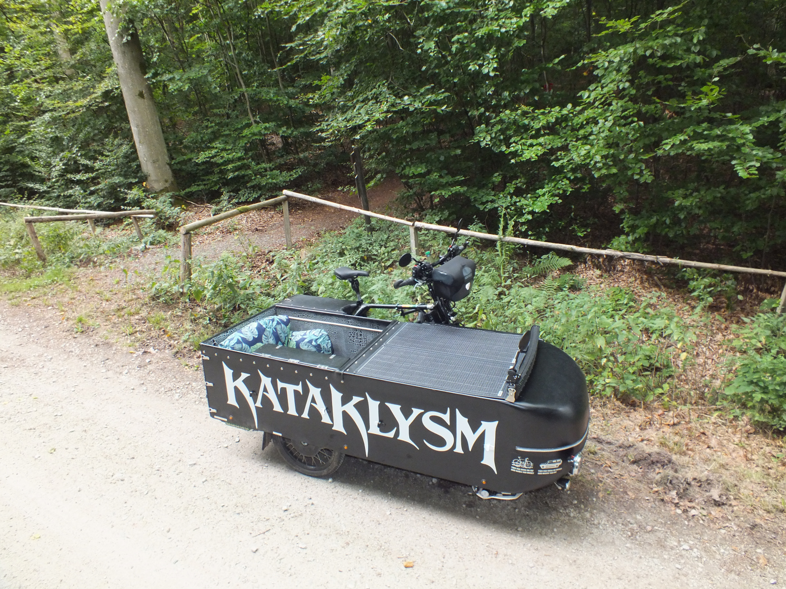 Das Fahrrad habe ich mir selbst gebaut da es noch kein Fahrradgespann in dieser größe gibt um viele schwere Lasten zu transportieren.