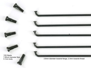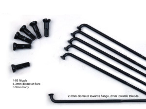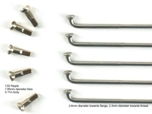 If you have a special rim you would like to use on a wheel build or you just want to upgrade the spokes on your existing wheel, then we can produce a custom-cut spoke set for the job. We recommend selecting the Sapim Strong single butted 13-14g spokes for almost any hub motor build; they're thick 13g (2.3mm) at the bend where spokes are under the most stress but taper to 14g to fit a standard bicycle nipple. We can also carry 12g-13g spokes if you are looking for thicker gauge spokes, but be sure your rim and hub are compatible with the larger hole size. See our wheel building page for more detailed information on building your wheel.